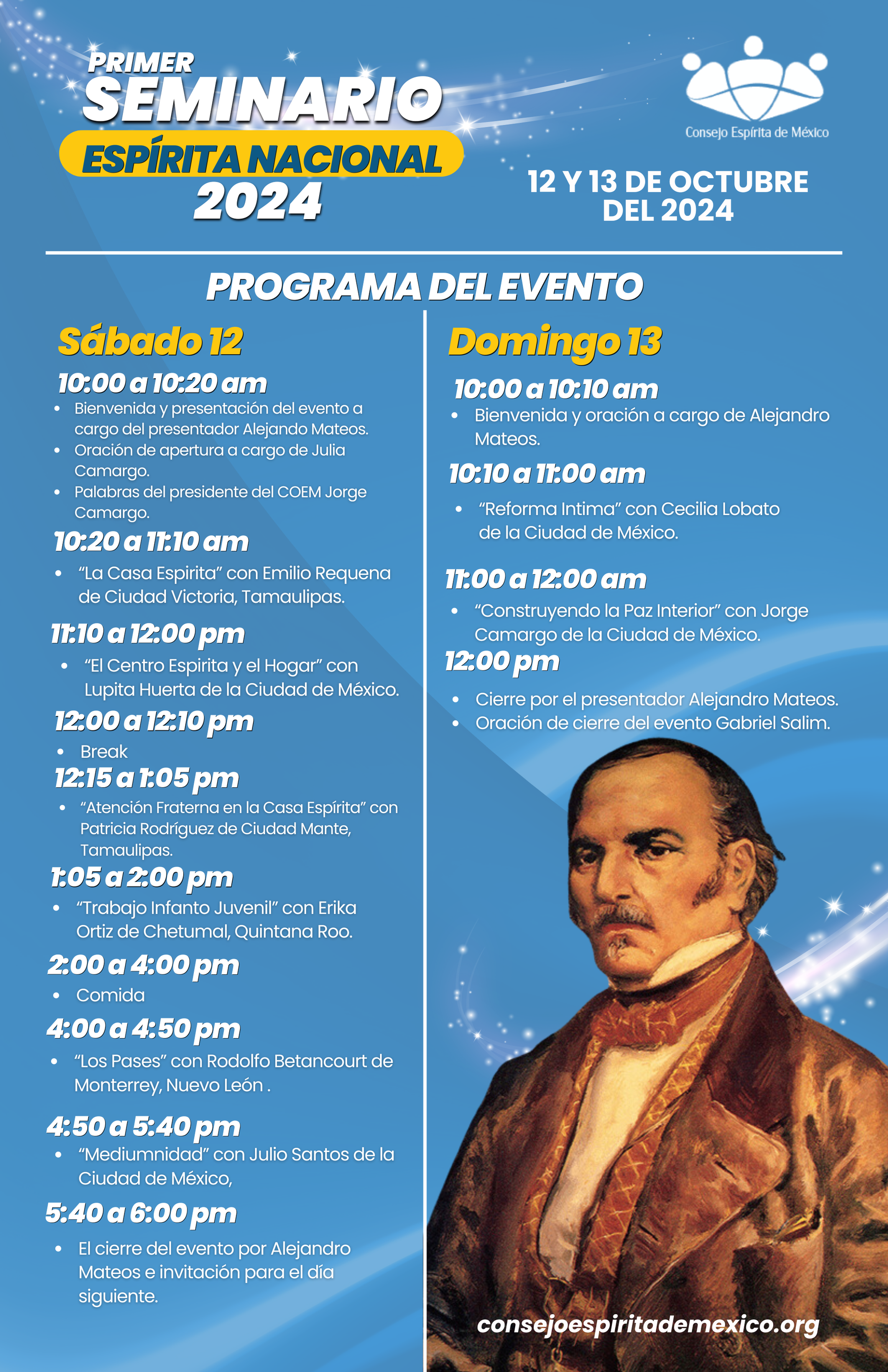 ¡Nos emociona anunciar nuestro primer Seminario Espírita, que se llevará a cabo los días 12 y 13 de octubre del 2024!